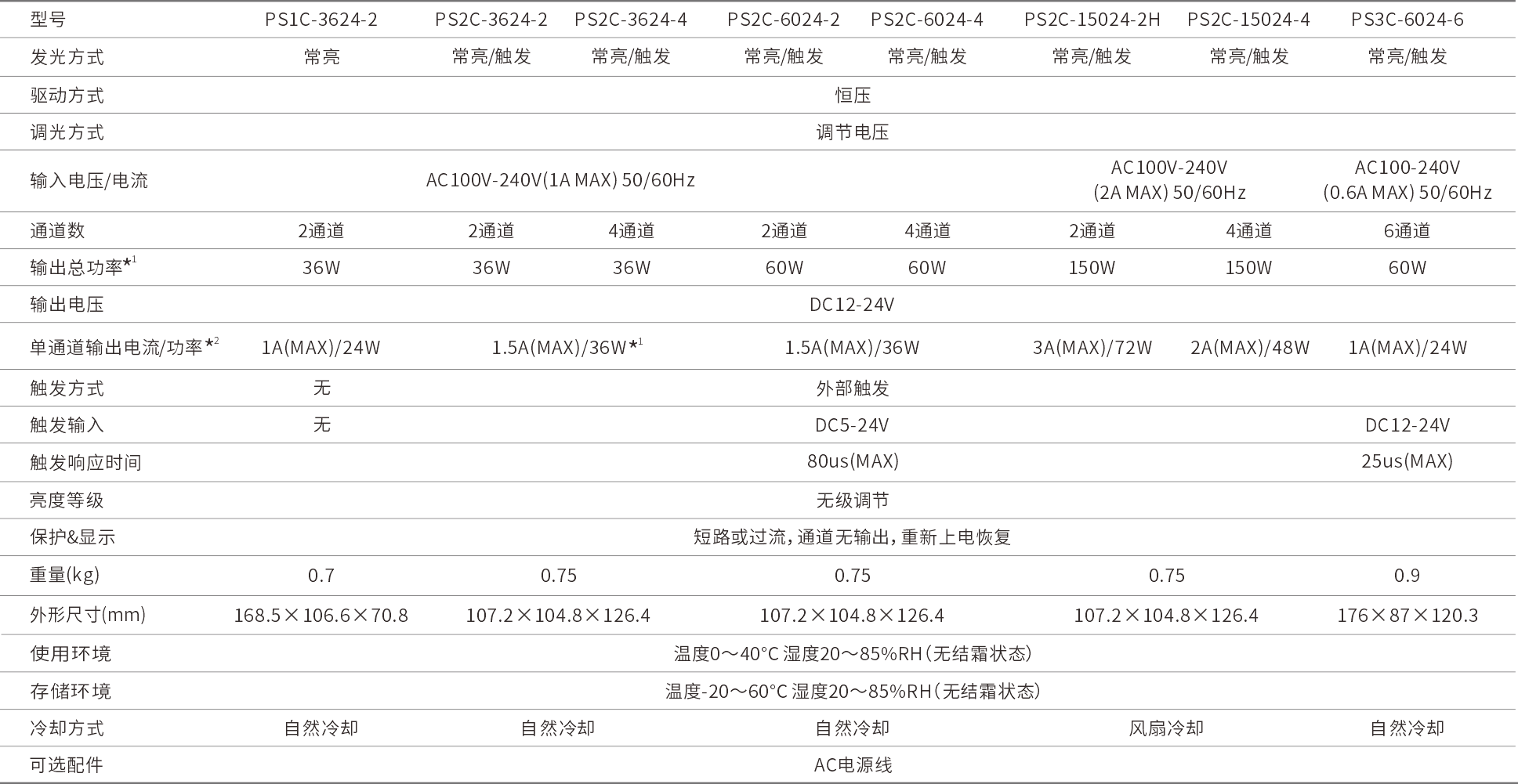 *1 AC100V-120V供电时,功率降额到70%