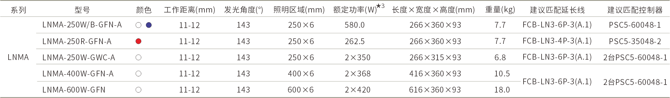 *3 实际产品功率与功率表内容相差±10%为正常范围