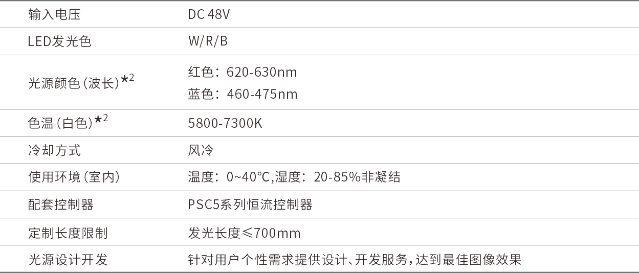 *2 波长与色温可定制,波长与色温因生产批次而异,有关详细内容,请参考规格书