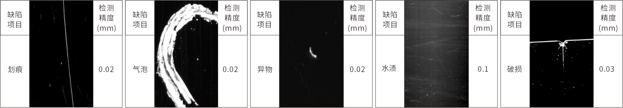 手机玻璃盖板表面划痕、气泡、污点等外观检测
