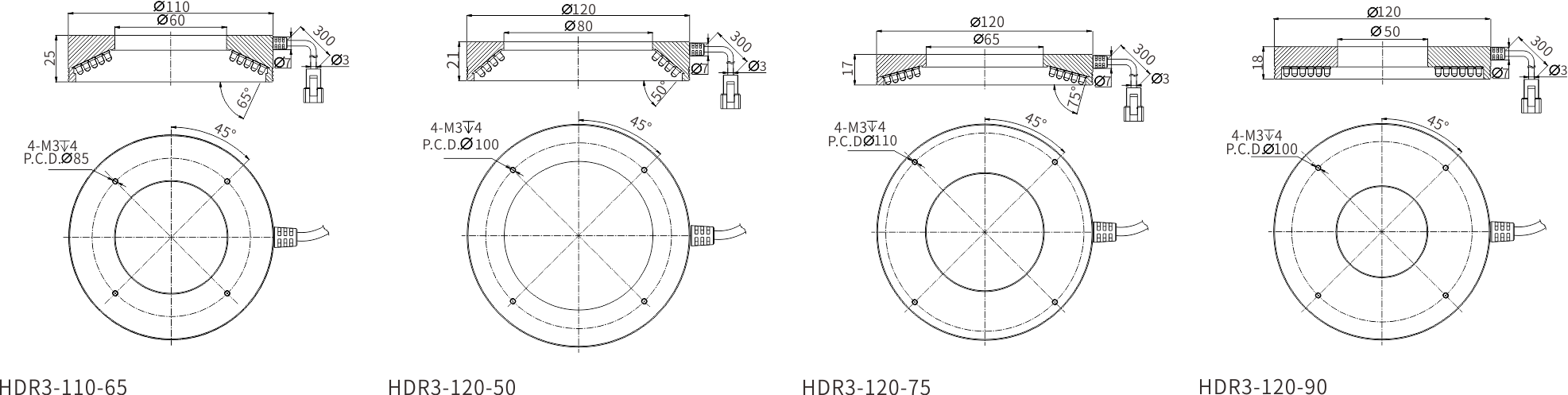 *3 当标配带角度漫射板时,可消除灯珠影,提高均匀性,并角度更丰富,成品型号为:HDR3-XX-DFA