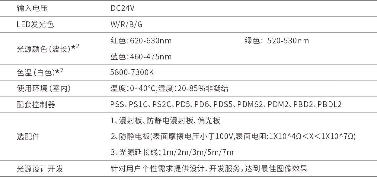 *2 波长与色温可定制,波长与色温因生产批次而异,有关详细内容,请参见规格书