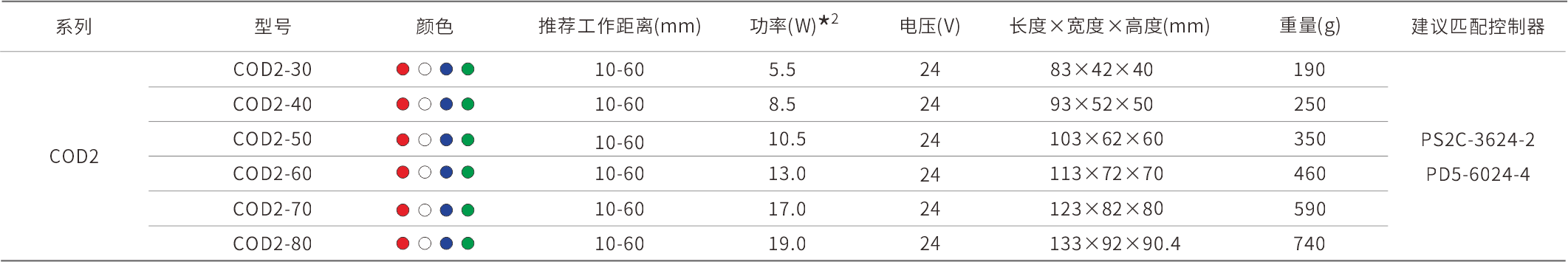*2 实际产品功率与功率表内容相差±10%为正常范围