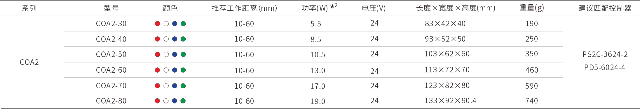 *2 实际产品功率与功率表内容相差±10%为正常范围