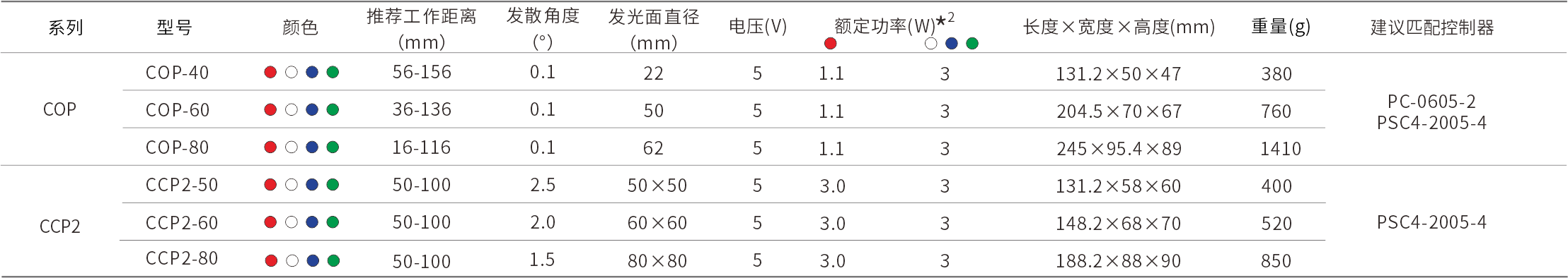 *2 实际产品功率与功率表内容相差±10%为正常范围