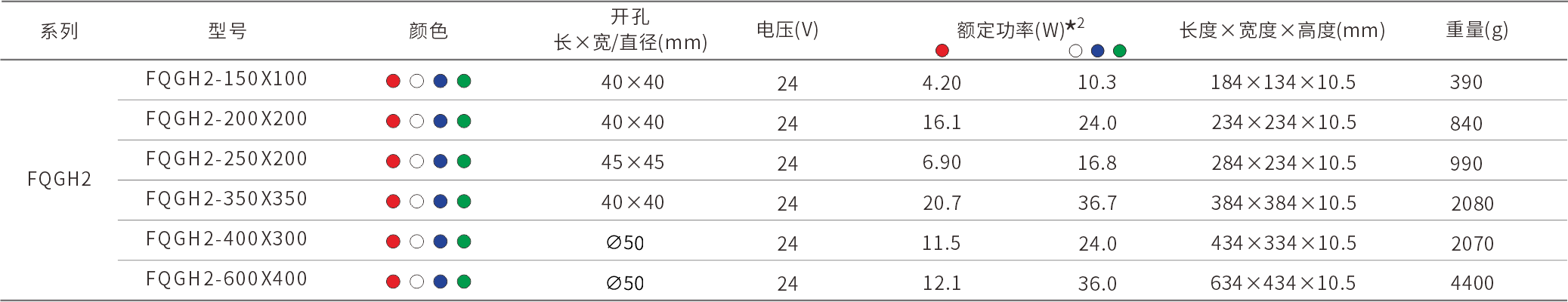 *2 实际产品功率与功率表内容相差±10%为正常范围