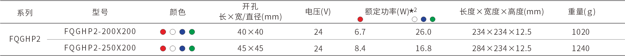 *2 实际产品功率与功率表内容相差±10%为正常范围
