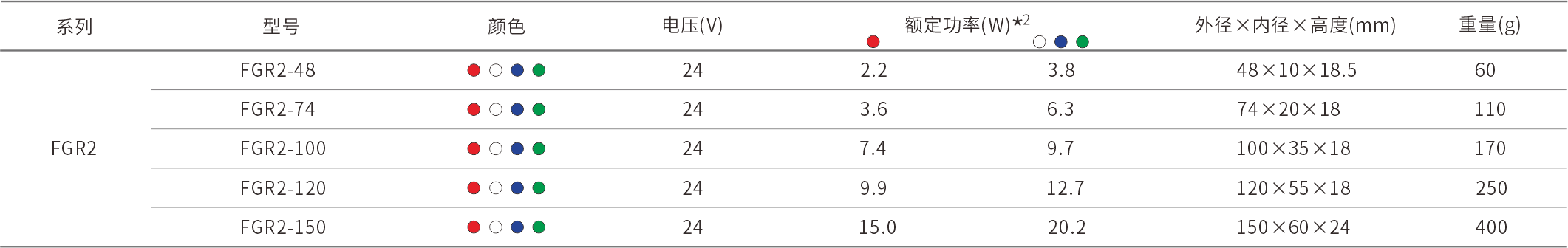*2 实际产品功率与功率表内容相差±10%为正常范围