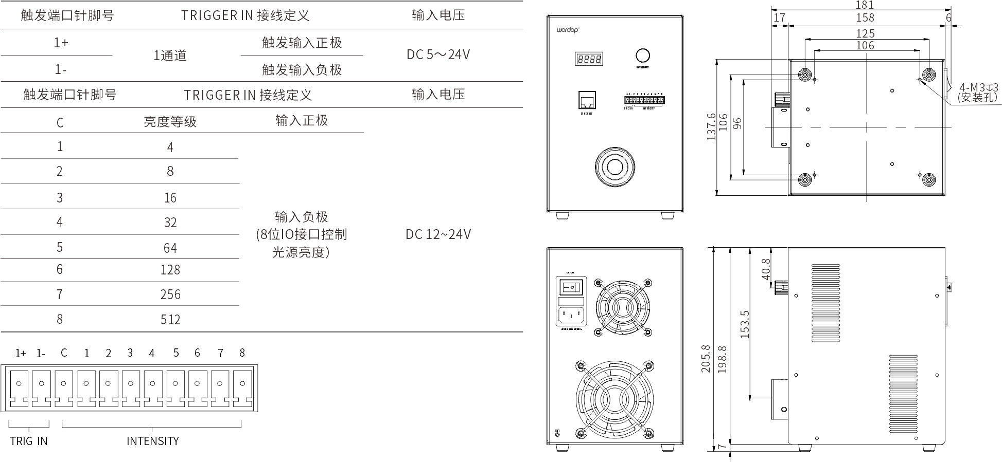 注:光源配用1.5米光纤,通光直径6mm,调光等级999实测值,仅供参考