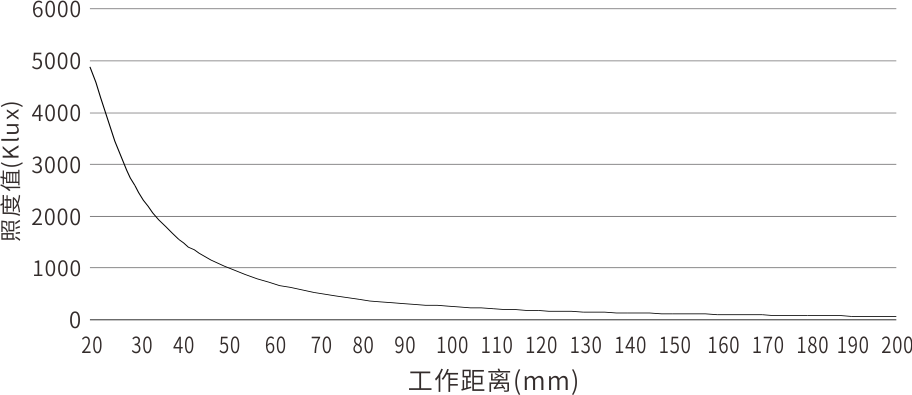 工作距离与照度曲线(代表例:PLF3-80W-2-LSE)